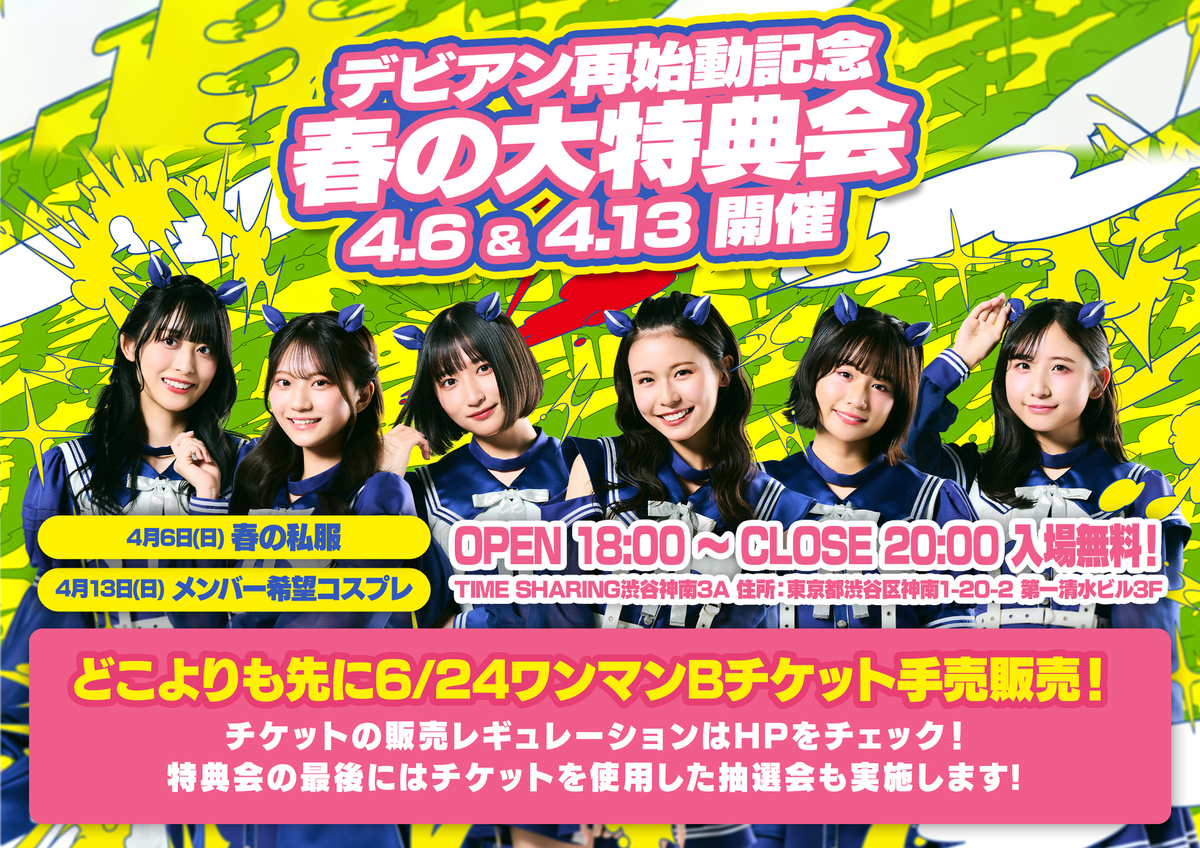 2025年4月6日(日)&4月13日(日)開催『デビアン再始動記念「春の大特典会」』レギュレーションのお知らせ