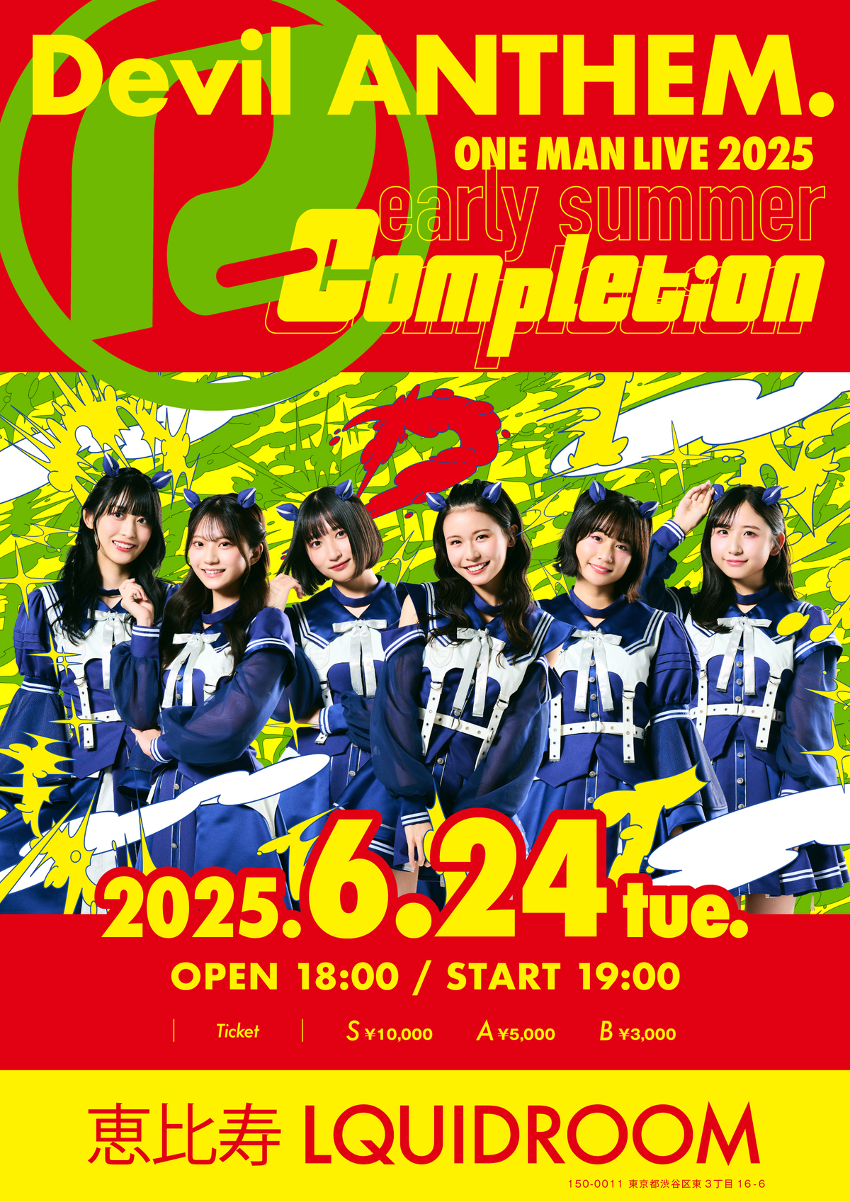 6月24日(火)に開催されるワンマンライブ『Devil ANTHEM. ONE MAN LIVE 2025〜early summer〜「R-Completion」』のBチケット(¥3,000)を最速販売致します。