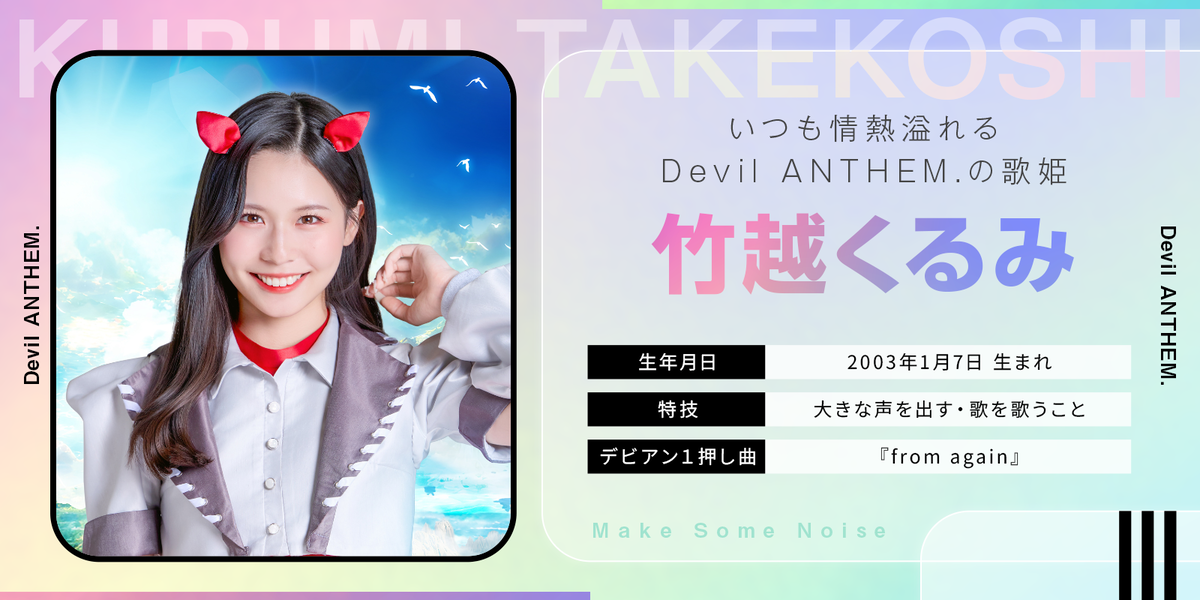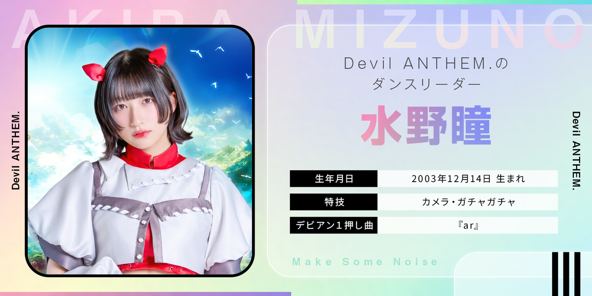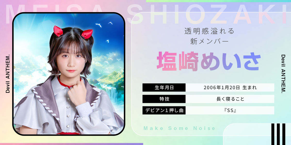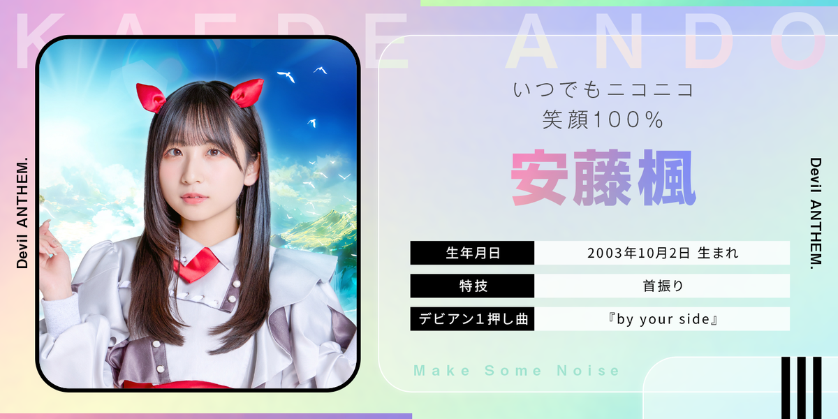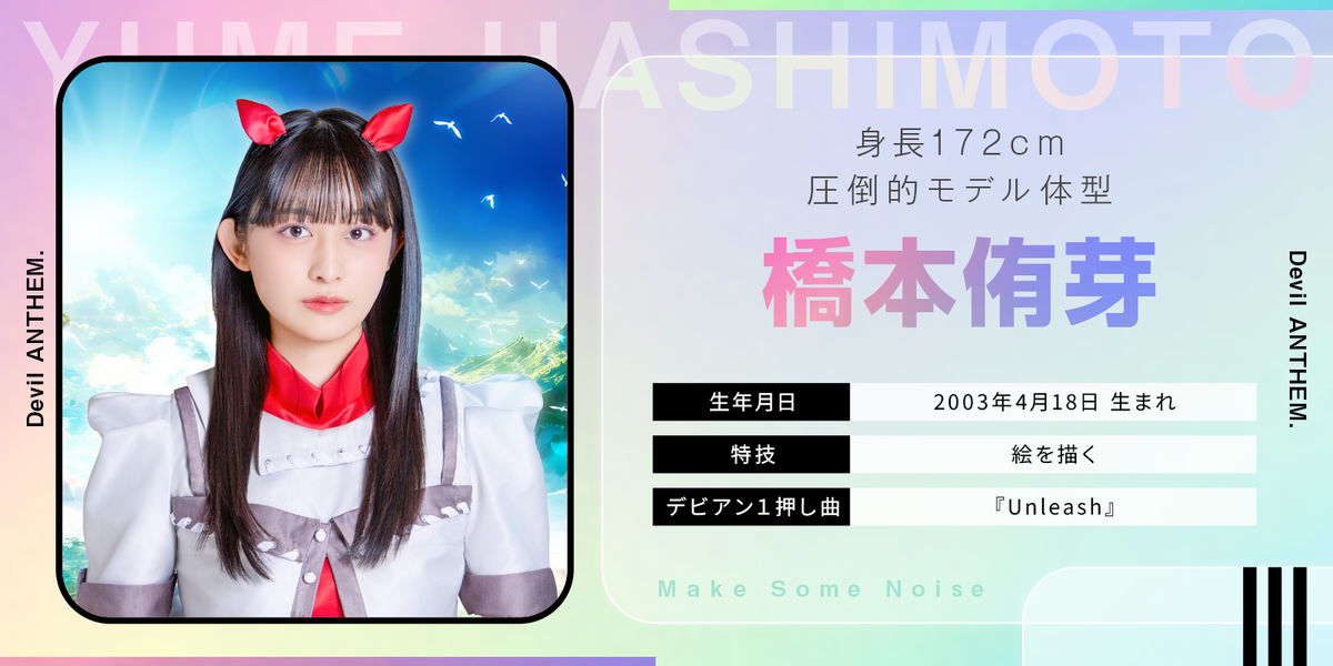 「Make Some Noise」をキャッチコピーに、どこよりも楽しく沸けるライブを追求するアイドルグループ。「悪魔の聖歌」という名前の意味のごとく、天界から人々を幸せにするために降り立った小悪魔天使が繰り広げる真っ直ぐなパフォーマンスが真骨頂の6人組。通称デビアン。またサウンド面に関してはUK HARDCORE、HAPPY HARDCORE、DUBSTEPなどのデジタルサウンドからROCK、POPS様々なジャンルを取り入れ、すべてにおいて感度の高いサウンドを追求している。